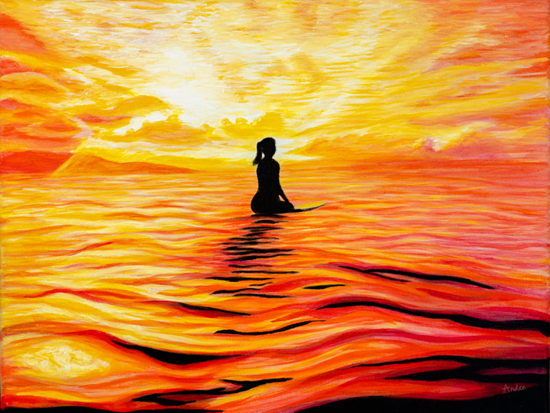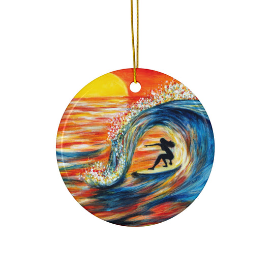 Ceramic Ornament, Surfer Girl Sunset Barrel